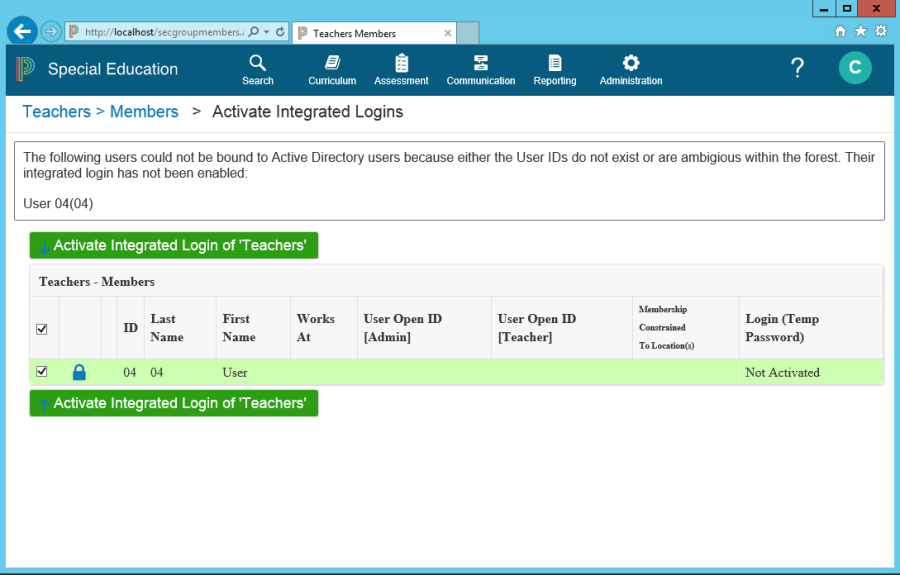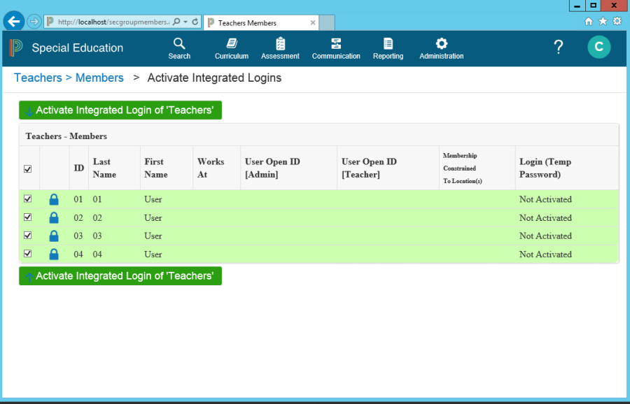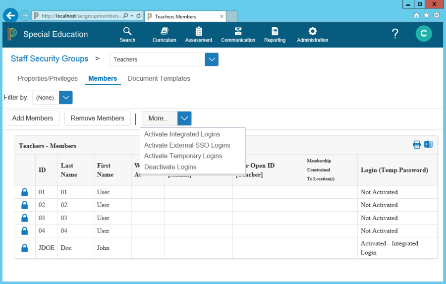 Click More > Activate Integrated Logins to select the staff to activate.