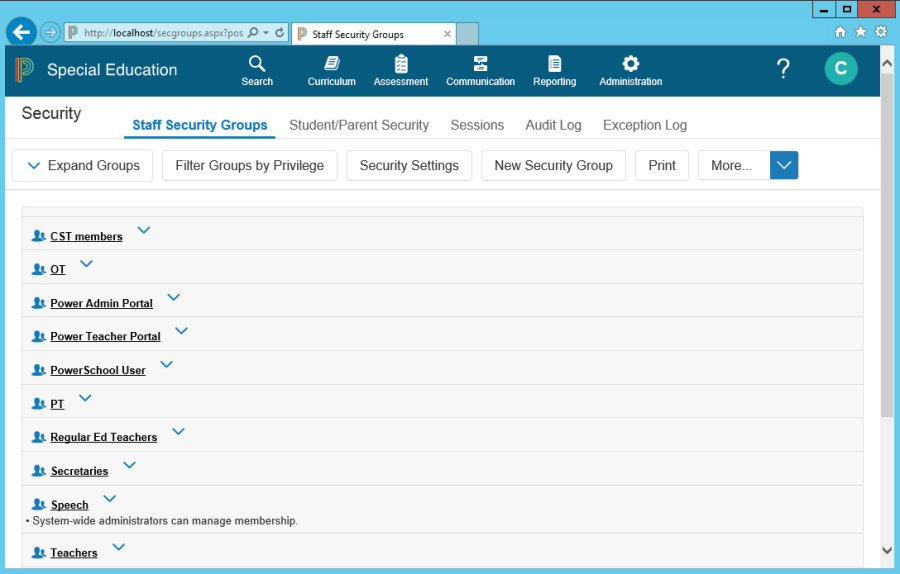 Log in as the System Administrator, and then select Administration > Security.