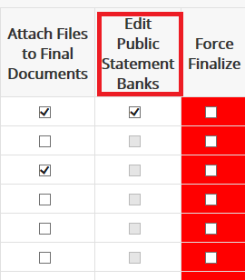 Assign the corresponding document template right labeled Edit Public Statement Banks for the specific document templates you wish to authorize for that security group (as shown in the second screen shot below).