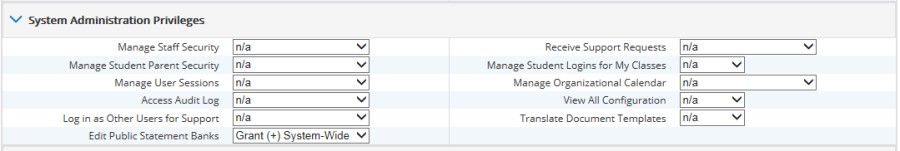 Assign the Edit Public Statement Banks system administration privilege to the appropriate security group at the relevant organizational level (as shown in the first screen snippet below).