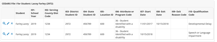 Set Cedars File I>{QualificationCode} = SpecialEducation{EligibilityCategory}